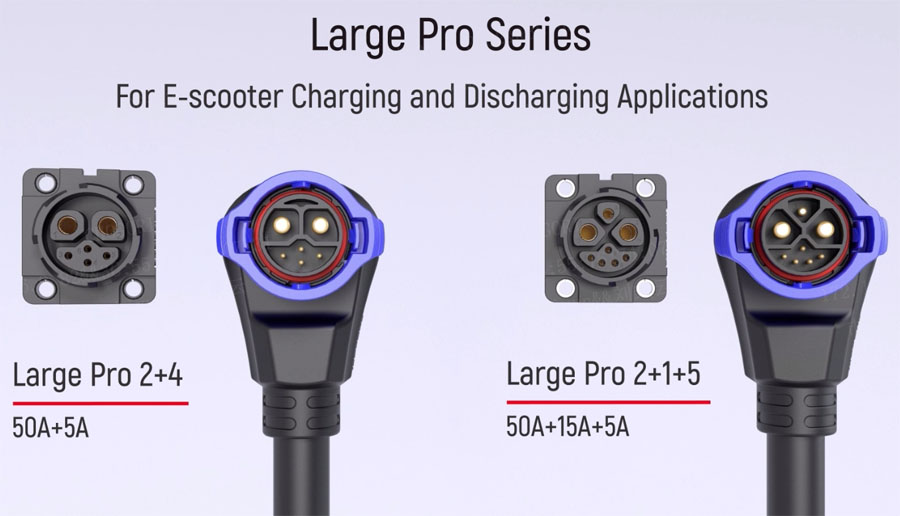隨著全球電動兩輪車與三輪車市場的快速增長,Large Series 作為充放電解決方案已可靠運行近十年。然而,隨著重點行業(yè)對更高性能的需求,新一代連接器呼之欲出?;谟脩舴答伵c深入研究,Large Pro Series 順勢而生——它不僅是一次升級,更是面向未來的全新引領(lǐng)者。